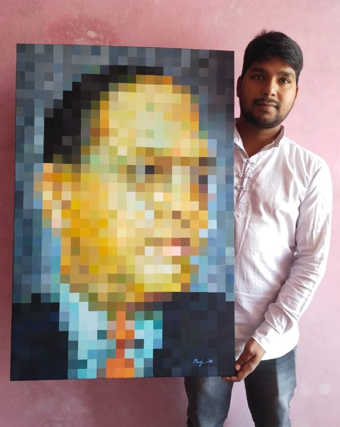 डॉ अम्बेडकर की 130 वी जयंती पर कलाकार मनोज ने अपनी अस्पष्ट कला के माध्यम से डॉ भीमराव अंबेडकर की पेंटिंग बनाई। करीब 20 दिन की कड़ी मेहनत और दो हज़ार की लागत से बनी ये पेंटिंग मनोज की कला का एक आयाम मात्र है। मनोज पिछले 16 वर्षों से कला की इस विधा से जुड़े हुए है। जनता इंटर कालेज के छात्र रहे मनोज ने छठी कक्षा में ही तत्कालीन राष्ट्रपति स्वर्गीय अब्दुल कलाम का दिल जीत लिया था। पंतनगर में आयोजित विज्ञान प्रदर्शनी में 400 बच्चों में चयनित मनोज ने चावल के दानों से ताज महल और शहीद उधम सिंह का चित्र बनाकर तत्कालीन राष्ट्रपति डॉ अब्दुल कलाम से स्नेह प्राप्त किया। आज ऐसी कई कलाकृतियां बना चुके मनोज अपनी प्रतिभा को अंतरराष्ट्रीय स्तर तक ले जाने के लिए प्रयासरत है। मनोज ने फाइन आर्ट्स में स्नातक की पढ़ाई पूरी की है। मनोज अपनी कला के माध्यम से अपनी माता और देश को गौरवान्वित करना चाहते है। वह अपनी सम्पूर्ण कला का श्रेय अपनी माँ की मेहनत को देते है की उनके बल पर ही आ वह इस मुकाम पर है।