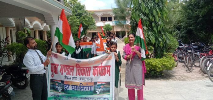 आवास विकास स्थित सिटी मॉडल इंटर कॉलेज में नेहरु युवा केन्द्र के जिला युवा अधिकारी रविन्द्र सिंह के निर्देशन पर राष्ट्रीय युवा स्वयं सेवक मुस्कान चावला द्वारा युवा विकास के अंतर्गत किए गए कार्यक्रम में हर घर तिरंगा और स्वच्छता पखवाड़ा मनाया गया तदोपरांत सिटी मॉडल इंटर कॉलेज के प्रधानाचार्य और प्रबंधक सतीश बत्रा के नेतृत्व में कॉलेज परिसर में वृक्षारोपण करने के उपरांत सामान्य ज्ञान व पोस्टर ज्ञान प्रतियोगिता का आयोजन किया गया। जिसमें सफल रहे प्रथम, द्वितीय एवं तृतीय के अलावा अन्य बच्चों को सांत्वना पुरस्कार दिए गए। बच्चों ने हाथों में तिरंगा झंडा लेकर ‘झंडा ऊंचा रहे हमारा के साथ तिरंगा रैली निकाली गई।इस दौरान मुस्कान ने छात्र छात्राओं को स्वच्छता पखवाड़ा के बारे में बताते हुए अपने आसपास सफाई व्यवस्था सुचारू रखने के अलावा 13 से 15 अगस्त तक अपने प्रतिष्ठानों पर राष्ट्रीय ध्वज तिरंगा फहराने की अपील की। इस मौके पर प्राध्यापिका सुनीता रानी, रेखा रानी, अक्षरा,अब्बास,सूरज,उदय, राहुल,ध्रुव एव दक्ष सहित तमाम बच्चे मौजूद रहे l