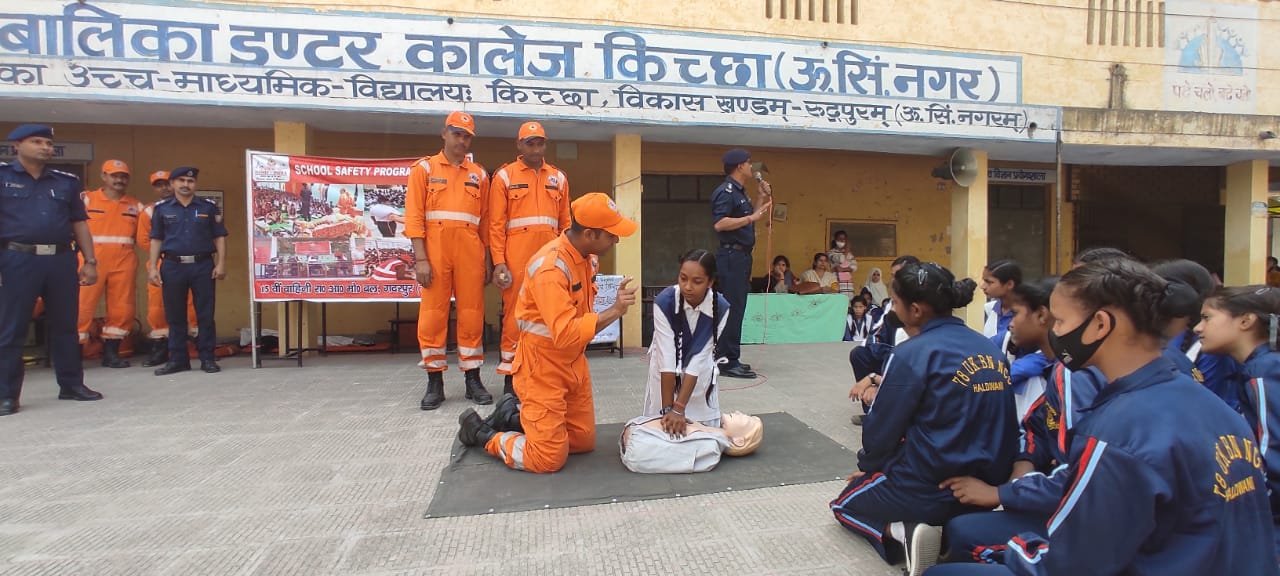 भोंपूराम खबरी।गदरपुर स्थित 15वीं वाहिनी एन०डी०आर०एफ० द्वारा जनपद मे चलाये जा रहे स्कूल सेफ्टी कार्यक्रम के अन्तर्गत आज राजकीय बालिका इण्टर कॉलेज किच्छा मे आपदा प्रबन्धन प्रशिक्षण तथा स्कूल सेफ्टी कार्यक्रम आयोजित किया गया जिसमें प्राथमिक उपचार के साथ-साथ भुकम्प, बाढ, आग से बचाव जैसे आपदा सम्बंधित विषयों के बारे में जानकारी दी। सेनानी सुदेश कुमार दराल द्वारा बताया गाया कि प्रशिक्षण में भाग लेने वाले बच्चे आपदा के समय में कैसे अपनी अपने परिवार तथा समाज की मदद कर सकते हैं तथा कैसे एक जागरूक नागरिक की भूमिका भी अदा कर सकते है, यही इस कार्यक्रम का उद्देश्य है। साथ ही इस प्रशिक्षण की उपयोगिता के बारे में बताया कि इस प्रशिक्षण से जान-माल की हानि को काफी हद तक कम किया जा सकता है। कार्यक्रम से स्कूल के 20 अध्यापक एवं अध्यापिकाऐं, 465 छात्रायें एंव 03 अन्य स्कूल स्टाफ लाभान्वित हुए। इस कार्यक्रम में स्कूल प्राध्यापिका सुनीता यादव भी उपस्थित रही। इनके अतिरिक्त एन०डी०आर०एफ० के पदाधिकारियों में श्री प्रवीन कुमार ओझा (सहायक सेनानी) निरीक्षक अमलेश कुमार, उप० निरीक्षक दीप चन्द, व अन्य 14 बचाव कर्मियों द्वारा स्कूल में आपदा संबन्धित प्रशिक्षण दिया गया। मंगलवार को रा०ई०कॉलेज पंतनगर में प्रशिक्षण दिया जायेगा।