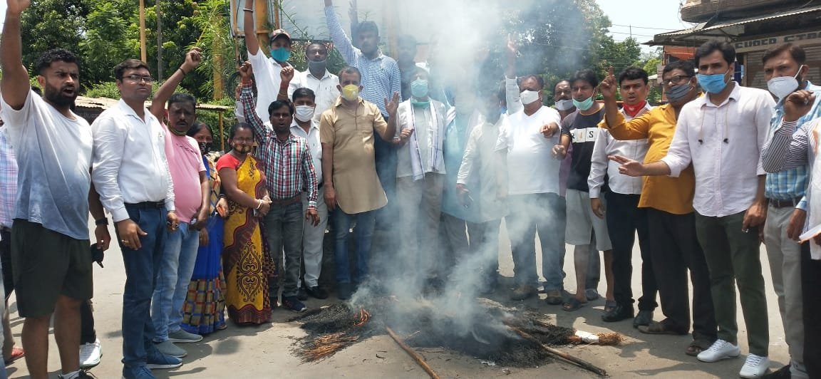 इस मौके पर महानगर अध्यक्ष जगदीश तनेजा ने कहा कि भाजपा की सरकार भ्रष्टाचार में पूरी तरह से डूबी हुई है। हरिद्वार में महाकुंभ की आड़ में कोरोना जांच घोटाले में सरकार के अधिकारी व सफेदपोश नेता भी शामिल है। जिसकी वजह से प्रदेश सरकार लीपापोती करने पर तुली हुई है। कांग्रेस पार्टी इस घटना की उच्च स्तरीय जांच और दोषियों के खिलाफ कड़ी कार्रवाई की मांग करती है। तनेजा ने कहा कि नगर में शैलजा फार्म की नजूल भूमि पर भाजपा के कुछ नेता अपने संरक्षण में अवैध कब्जा करा रहे हैं। कांग्रेस पार्टी द्वारा 6 माह पूर्व भी इस अवैध कब्जे की शिकायत नगर निगम व प्रशासन को की गई थी। अब भी अगर दोषियों के खिलाफ कार्यवाही नहीं की गई तो कांग्रेस पार्टी सड़कों पर उतरने को मजबूर होगी। इसके बाद प्रदेश सरकार का पुतला दहन किया गया।