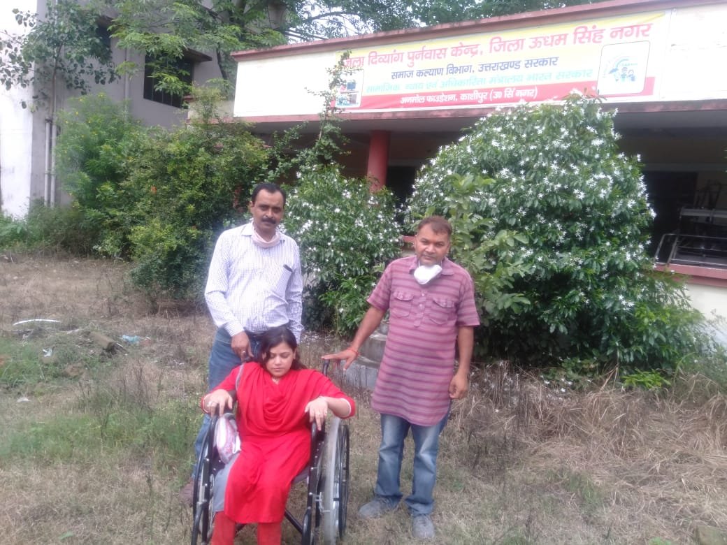 जिला दिव्यांग पुनर्वास केंद्र उधम सिंह नगर द्वारा दो महिलाओं को दी गई व्हीलचेयर और ट्राई साइकिल