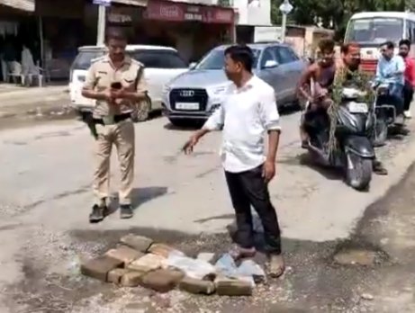 भोंपूराम खबरी,गदरपुर। राष्ट्रीय राजमार्ग पर बरसात के चलते हुए गड्ढों के कारण आए दिन हो रही दुर्घटनाओं को देखते हुए मित्र पुलिस के एक जवान द्वारा की गई पहल का लोगों द्वारा स्वागत किया गया।