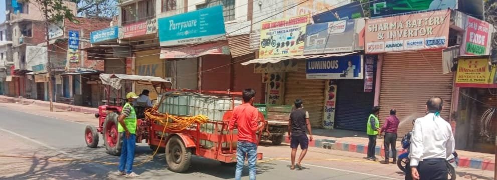 नगर निगम में शहर में चलाया सैनिटाइजर अभियान