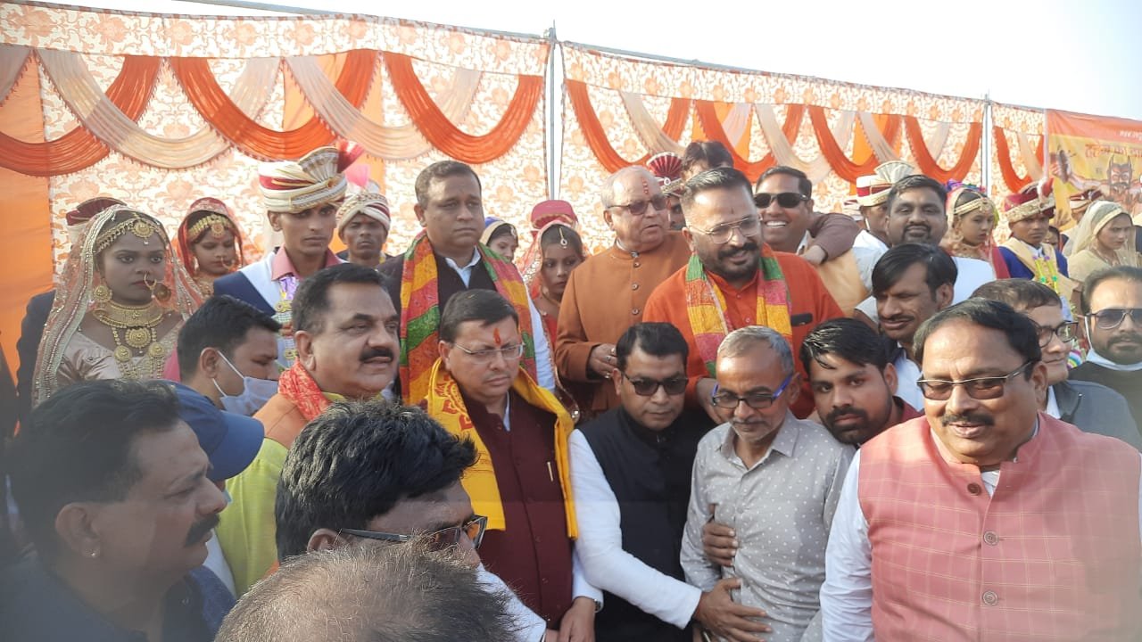 लघु उद्योग व्यापार मंडल एवं सर्व समाज कल्याण समिति की ओर ट्रांजिट कैम्प फुटबॉल मैदान में आयोजित पंचम सामूहिक विवाह कार्यक्रम में वर-वधु को आर्शीवाद देने पहुंचे मुख्यमंत्री पुष्कर सिंह धामी ने कहा कि सबसे बड़ा दान कन्या दान है, विश्व में कन्यादान से बड़ा कोई दान नहीं। उन्होंने सभी वर-वुधओं को आशीर्वाद देते हुए कहा कि परिवार में सभी आपसी स्नेह एवं प्रेम से रहें, सभी का नवदम्पती जीवन सुखमय एवं समृद्ध हो। उन्होंने कहा कि यह सामूहिक विवाह कार्यक्रम नहीं बल्कि उत्सव है। सीएम धामी ने समिति द्वारा कराये जा रहे इस कार्य की सराहना की और कहा कि एक समय था जब गरीब की बेटी की शादी के खर्च से रिश्तेदार भी घबराते थे, लेकिन आज समाज के बुद्धीजीवियों एवं समितियों के ऐंसे सहयोग एवं सहभागिता से गरीब एवं निःसहाय बेटियों की शादी आसानी से होने के साथ ही लिंगानुपात में भी सुधार आएगा। उन्होंने कहा कि बांग्लादेश से मजबूरी के कारण भारत आये और यहॉ के परिवेश में घुल मिलने के साथ ही एकसाथ कदम ताल की, उनके प्रमाण पत्र में लिखा जाने वाला पूर्वी पाकिस्तान शब्द अपमानजनक महसूस करता था, जिसे हटा दिया गया है। उन्होंने कहा कि भाजपा मा प्रसाद मुखर्जी को मूल्य आदर्शों पर चलने वाली पार्टी हैं। उन्होंने कहा कि राष्ट्र निर्माण में बंगाल के प्रबुद्धजनों का बहुत बड़ा योगदान रहा है। सीएम धामी ने कहा कि मुख्य सेवक के रूप में पिछले पांच माह से एक-एक पल व क्षण राज्य एवं राज्य की 1.25 करोड़ जनता के लिए समर्पित किया है। उन्होंने कहा कि नजूल भूमि पर बसे व्यक्तियों को मालिकाना हक दिलाने की लम्बे समय से मांग रही है, जिसका समाधान करते हुए जल्द ही नजूल भूमि पर काबिज लोगो को मालिकाना हक उनके कार्यकाल में दिलाया जाना सौभाग्य की बात है।
