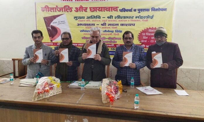 भोंपूराम खबरी,रुद्रपुर। नगर निगम सभागार में युवा कवि डॉ. जयंत साह की शोधपरक पुस्तक ‘गीतांजलि और छायावाद तुलनात्मक-अध्ययन’ का विमोचन प्रसिद्ध साहित्यकार और भारतीय ज्ञानपीठ के पूर्व निदेशक डॉ लीलाधर मंडलोई, चर्चित कवि मदन कश्यप, कवि कस्तूरीलाल तागरा और शंकर चक्रवर्ती द्वारा सम्पन्न किया गया। किताब को ‘समय साक्ष्य’ देहरादून की प्रकाशन संस्था ने प्रकाशित की है जिस पर कई दृष्टिकोण से व्यापक परिचर्चा हुई।