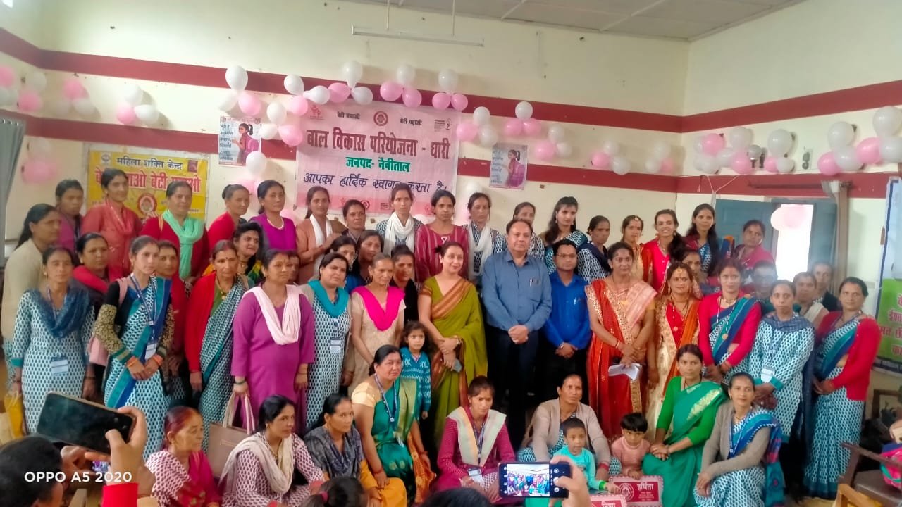 भोंपूराम खबरी,नैनीताल। ब्लाक सभागार धारी के विकास परियोजना धारी के द्वारा बेटी बचाओ बेटी पढाओ कार्यशाला का आयोजन किया गया। जिसको मुख्य अतिथी विधायक भीमताल राम सिंह कैडा रहें। साथ ही विशिष्ट अतिथि ब्लाक प्रमुख श्रीमती आशा रानी के साथ S.D.M धारी, तहसीलदार धारी, B.D.0 परियोजना अधिकारी के साथ सभी सम्मानित जिला कार्यक्रम बाल विकास साथ सभी सम्मानित जनप्रतिनिधी उपस्थित रहे। कार्यक्रम का संचालन सुपरवाईजर श्रीमती बबली हुसैन द्वारा किया गया। कार्यक्रम में विभाग के द्वारा महालक्ष्मी किट, बेबी किट, स्वच्छता किट, इसके साथ बेटियों की पहचान नेम प्लेट के रूप में की गयी। साथ ही विभाग की विभिन्न जानकारियां दी गई।