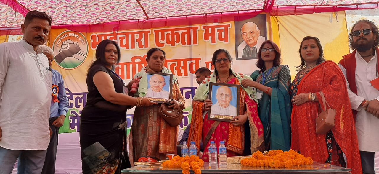 भोंपूराम खबरी, रुद्रपुर। भाईचारा एकता मंच के वार्षिकोत्सव एवं पटेल जयंती सम्मान समारोह में हजारों की संख्या में मातृशक्ति ने शिरकत की। इस दौरान संगठन के पदाधिकारियों ने भाईचारा एकता मंच की 1100 महिला सदस्यों को शॉल ओढ़ाकर सम्मानित भी किया।