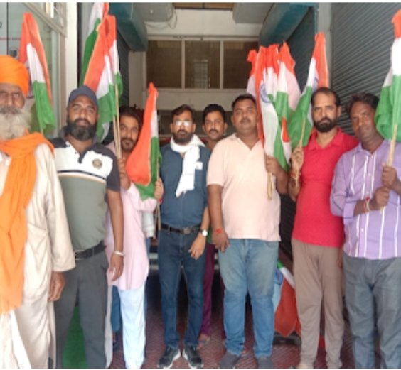 भारतीय किसान मोर्चा के प्रदेश अध्यक्ष अनिल चौहान के दिशा निर्देशन में किसान मोर्चा के पदाधिकारियों ने प्रदेश मंत्री नरेश हुड़िया के नेतृत्व में स्वतंत्रता दिवस की 75 वीं वर्षगांठ को हर्षोल्लास के साथ मनाये जाने को लेकर लोगों को जागरूक करने के उद्देश्य से देश की आन बान और शान के प्रतीक तिरंगे झंडे का वितरण किया गया। इस दौरान नरेश हुड़िया ने कहा कि भारत सरकार ने आजादी के उन मतवालों की याद में हर घर तिरंगा घर-घर तिरंगा अभियान का आगाज किया है। उन्होंने कहा कि आजादी के अमृत महोत्सव को और भी यादगार बनाए जाने को लेकर देशभर में करीब 20 करोड़ घरों पर तिरंगा फहराने का लक्ष्य रखा है उन्होंने क्षेत्रवासियों से 13 अगस्त से लेकर 15 अगस्त तक अपने प्रतिष्ठानों एवं घरों पर तिरंगा फहराने की अपील की। इस मौके पर प्रदेश मंत्री नरेश हुड़िया, प्रदेश कार्यकारिणी सदस्य संदीप गुंबर अशोक छाबड़ा के अलावा राष्ट्रीय योगी सेना के अध्यक्ष हैप्पी चंद्रा, महामंत्री हरीश अरोरा, मीडिया प्रभारी निपुण गगनेजा सहित काफी संख्या में कार्यकर्ता मौजूद रहे।