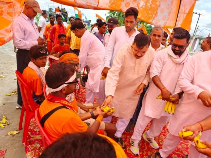 भोंपूराम खबरी,किच्छा:- भारतीय जनता पार्टी के वरिष्ठ नेता पूर्व विधायक राजेश शुक्ला ने आज कार्यकर्ताओं के साथ किच्छा बाईपास पर हरिद्वार से कांवर लेकर आ रहे हैं भगवान भोले के भक्तों का स्वागत किया एवं प्रसाद वितरण किया !