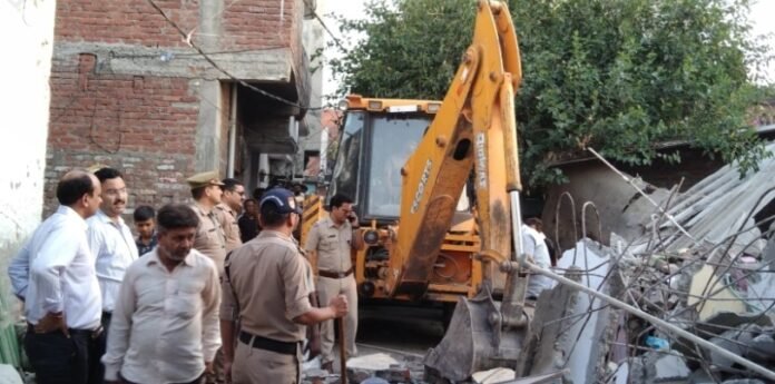 गौरतलब है कि सुभाष कालौनी निवासी सद्दाम की पिछले सप्ताह हत्या हो गयी थी। हत्याकांड में पांच लोगों का नाम समाने आया था, जिसमें मुख्य आरोपी नबाब का बड़ी निवासी सुभाष कालौनी बताया जा रहा था, नबाव की आज ही गिरफ्तार भी हुई थी, बताया जाता कि नबाब का गोदाम और मकान दोनों सरकारी जमीन पर बने हुए थे।आज दोपहर बाद एसडीएम प्रत्यूष मिश्रा ,सीओं अभय सिंह ने पुलिस फोर्स के मौके पर पहुंचकर नबाब का गोदाम और मकान दोनों ध्वस्त करा दिया। हत्याकांड के आरोपी के घर जेसीबी गरजने से अपराधियों में खलबली मची हुई है।आपको बता कि पिछले कुछ दिनों से जिले में अपराधियों ने जमकर गदर मचाया है। जिसके चलते प्रशासन को यह कदम उठाने को मजबूर होना पड़ा है। एसएसपी मंजूनाथ टीसी पहले ही अपराधियों को बुल्डोजर चलाने की चेतावनी दे चुके हैं।