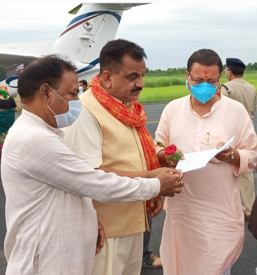 भोंपूराम खबरी,रुद्रपुर। देहरादून वापसी के दौरान मुख्यमंत्री पुष्कर सिंह धामी से मुलाकात कर विधायक राजकुमार ठुकराल ने पुलिस कर्मियों की ग्रेड पे की मांग को लेकर उनके परिवार की मांगों से संबंधित ज्ञापन मुख्यमंत्री को सौंपा।