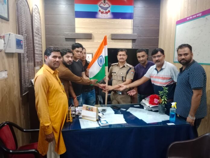 भोंपूराम खबरी,गदरपुर। प्रांतीय उद्योग व्यापार मंडल ने शहर के नवनियुक्त थाना प्रभारी राजेश पाण्डेय का पौधा देकर स्वागत किया गया। इस दौरान थानाध्यक्ष पाण्डेय ने व्यापार मंडल के पदाधिकारियों का आभार व्यक्त किया।वही इस दौरान पदाधिकारियों द्वारा हर घर तिरंगा की इस मुहिम के तहत नवनियुक्त थानाध्यक्ष को तिरंगा भी भेंट किया गया। इस दौरान व्यापार मंडल ने कहा कि गदरपुर व्यापार मंडल पुलिस प्रशासन के साथ कंधे से कंधा मिलाकर उनके साथ खड़ा हैं।