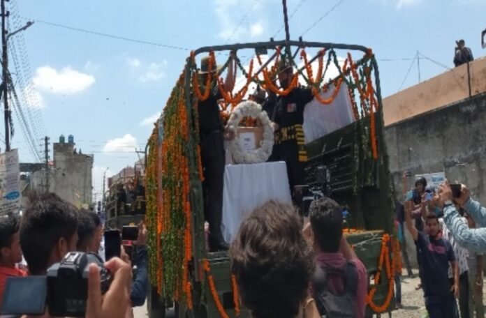 भोंपूराम खबरी। मुख्यमंत्री पुष्कर सिंह धामी हल्द्वानी पहुंचे हैं, वह यहां सियाचिन में 38 साल पहले शहीद हुए लांसनायक चंद्रशेखर हर्बोला को श्रद्धांजलि देंगे। आज बुधवार को लांसनायक चंद्रशेखर हर्बोला का पार्थिव शरीर उनके घर हल्द्वानी लाया गया। प्रशासन की ओर से सभी तैयारियां पूरी हैं, जहां शासन-प्रशासन के अधिकारियों, नेतागण और हजारों की संख्या में लोग शहीद जवान को श्रद्धांजलि देने के लिए आए हुए है। शहीद जवान चंद्रशेखर हर्बोला का अंतिम संस्कार पूरे राजकीय सम्मान के साथ रानीबाग स्थित चित्रशाला घाट पर किया जाएगा। शहीद की दो पुत्रियां हैं और उनकी धर्मपत्नी शांति देवी इन दिनों हल्द्वानी की नई आईटीआई रोड धान मिल, स्थित चौराह सरस्वती विहार, डहरिया में रहती हैं।