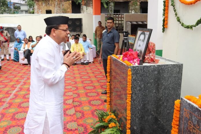 भोंपराम खबरी। सीएम पुष्कर सिंह धामी ने गुरुवार को शहीद स्थल, खटीमा में उत्तराखंड राज्य आंदोलन के दौरान शहीद आंदोलनकारियों की स्मृति में आयोजित श्रद्धांजलि कार्यक्रम में प्रतिभाग करते हुए खटीमा गोली कांड में शहीद हुए राज्य आंदोलनकारियों को श्रद्धांजलि एवं उनकी स्मारक पर पुष्पांजलि अर्पित की, एवं शहीदों के परिजनों को शॉल उड़ाकर सम्मानित किया।