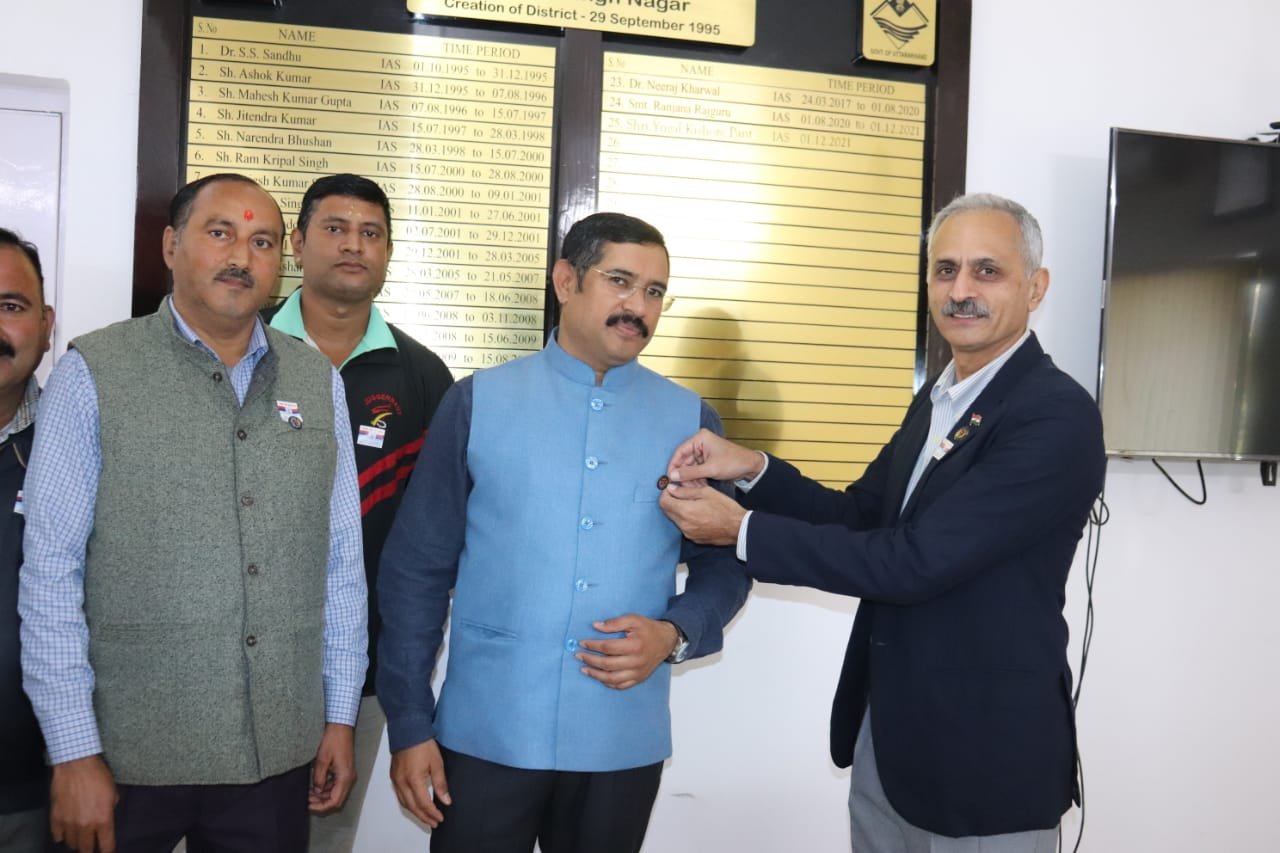 भोंपूराम खबरी रुद्रपुर। ऊधम सिंह नगर जनपद मुख्यालय में सशस्त्र सेना झण्डा दिवस मनाया गया। जिलाधिकारी के कैम्प कार्यालय मे जिलाधिकारी युगल किशोर पन्त को जिला सैनिक कल्याण एवं पुनर्वास अधिकारी कै0 रणजीत सेठ (से0नि0) द्वारा झण्डा व बैच लगाया गया।