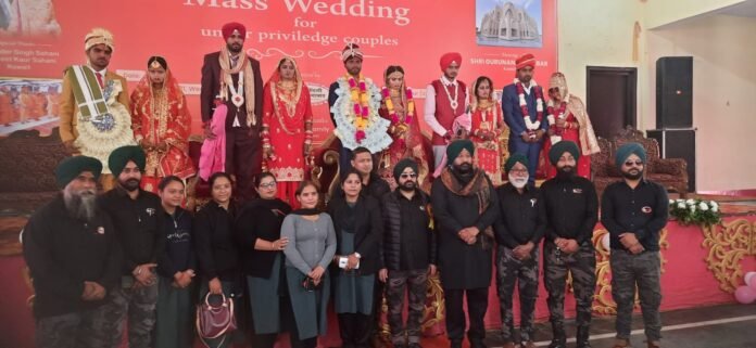 शहर के सिटी क्लब में सिख युवकों की सामाजिक संस्था जिंदगी जिंदाबाद के संस्थापक करमजीत सिंह चाना की मौजूदगी में बेहद ही आर्थिक रुप से कमजोर परिवार की कन्याओं का सामुहिक विवाह करवाया गया। सजो सज्जा के बीच संस्था के सदस्यों ने बारातियों का तिल क और पुष्पवर्षा कर स्वागत किया। संस्था के संस्थापक चाना ने बताया कि दो कन्याओं का विवाह पहले गुरुद्वारे में किया जा चुका है। पांच कन्या एं बेहद ही गरीब परिवार की है। प्रतिवर्ष एक कन्याओं की वृद्धि कर विवाह करवाया जाएंगा। उन्होंने बताया कि सामाजिक कार्याे के लिए ही सं स्था का गठन किया गया है। इसके अलावा कोरोनाकाल में पूरे लॉकडाउन में गरीबों को भोजन,पांच रुपये में थाली जैसी योजनाएं भी संचालित की जा चुकी है। साथ ही संस्था मेडिसिन बैंक की योजना बना रही है। जिसमें जरुरतमंदों को रियायत दामों पर दवाई मुहैया कराने के साथ ही उ नके उपचार पर विचार कर रही है। इस मौके पर हरजिंदर सिंह लाड़ी,रंजीत सिंह,बलविंदर सिंह बल्लू,लवली लांबा,प्रियंका सचदेवा,मेघा रानी, ज्योति रानी,पूजा शर्मा,बलजीत कौर,रिप्सी अरोरा,मंजीत पाल,रविंद्र सिंह,हरविंदर सिंह चुघ,अमित कालड़ा,अमन सिंह साजन आदि मौजूद थे।