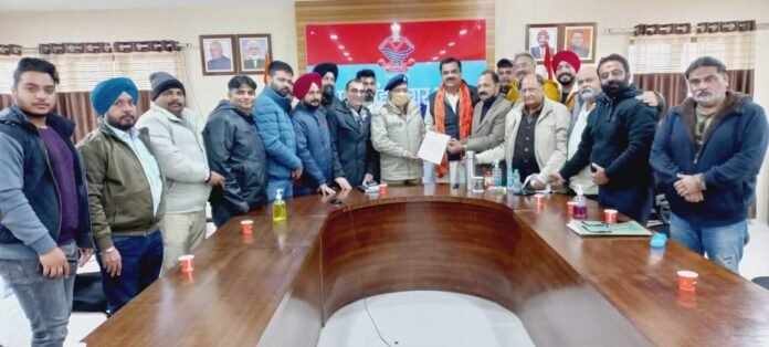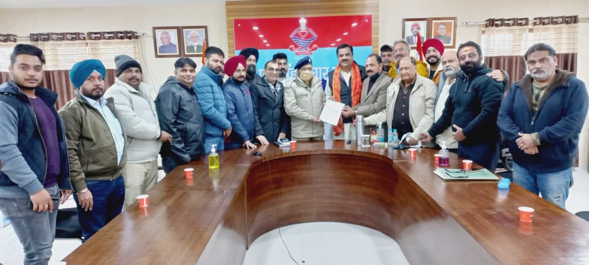 भोंपूराम खबरी, रुद्रपुर। उत्तराखंड पेट्रोलियम ट्रेडर्स एसोसिएशन से जुड़े व्यवसायियों नेविधायक राजकुमार ठुकराल के नेतृत्व में एसएसपी दलीप सिंह कुंवर से मुलाकात कर गुरूनानक सर्विस सेंटर सितारगंज में अज्ञात लोगों द्वारा पम्प के स्टाफ से की गयी मारपीट के मामले में कानूनी कार्रवाई की मांग की।
