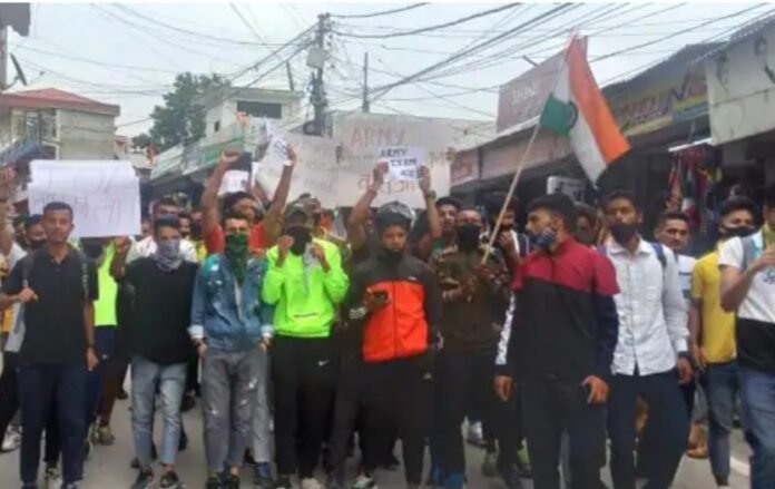 भोंपूराम खबरी। अग्निपथ भर्ती योजना के विरोध में उत्तराखण्ड के युवाओं में खासा आक्रोश देखने को मिल रहा है। खटीमा, हल्द्वानी, पिथौरागढ़ समेत कई जिलों में विरोध देखने को मिल रहा है। वहीं यूपी से सटे खटीमा में धारा 144 लागू कर दी गई है। साथ ही खटीमा रेलवे स्टेशन पर भारी पुलिस बल भी तैनात कर दिया है। वहीं हल्द्वानी में सड़कों पर उतरे युवाओं पर पुलिस ने लाठियां फटकारी हैं। बता दें युवाओं ने रोडवेज स्टेशन के पास सड़क जाम कर दी। बताया जा रहा है प्रदर्शनकारियों में हल्द्वानी की सैन्य अकादमियों में सेना भर्ती की तैयारी कर रहे युवा बड़ी संख्या में शामिल है। जहां हल्द्वानी में प्रदर्शनकारी युवाओं पर लाठीचार्ज कर उनको भगाया गया। इसके अलावा नैनीताल के पहाड़ी क्षेत्रों से भी युवा पहुंचे। एलआईयू रिपोर्ट के अनुसार हल्द्वानी में प्रदर्शन की तैयारी गुरुवार सुबह से ही चल रही थी। एकाएक सड़क पर उतरे युवाओं को समझाने में पुलिस जुटी है।
