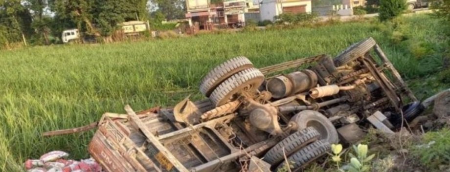 ट्रक पलटने से ट्रक में सवार एक युवक की मौत