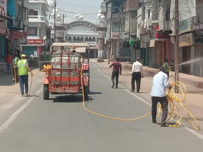 सुबह नौ बजे से नगर निगम का स्वास्थ्य अमला सक्रिय हो गया। क्षेत्रों को सैनिटाइज करने की प्रक्रिया शुरू की गई। गोल मार्केट, भगत सिंह चौक, गल्ला मंडी, बता चौक, गांधी पार्क, मनिहारी बाजार व विधवानी मार्केट को सैनिटाइज किया गया। दरअसल प्रदेश समेत शहर में एक बार फिर कोरोना का प्रकोप बढ़ गया है।